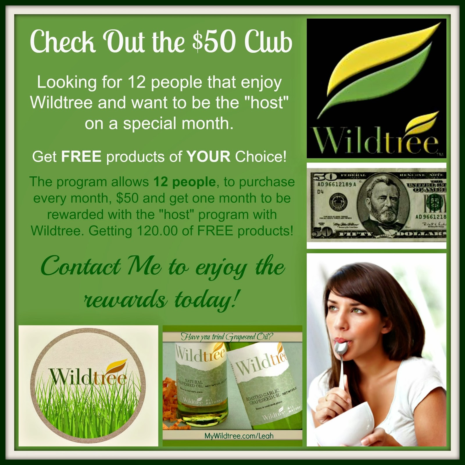 We give you all the ingredients to throw a wonderful and fun party any time in the comfort of your own home. Our Independent Representatives will show your guests how to make cooking quicker, easier and more healthful for those who are short on time. Plus, home tasting parties are a fun, interesting adventure for those who wish to be more creative in the kitchen. Come check us out! www.MyWildtree.com/Leah |