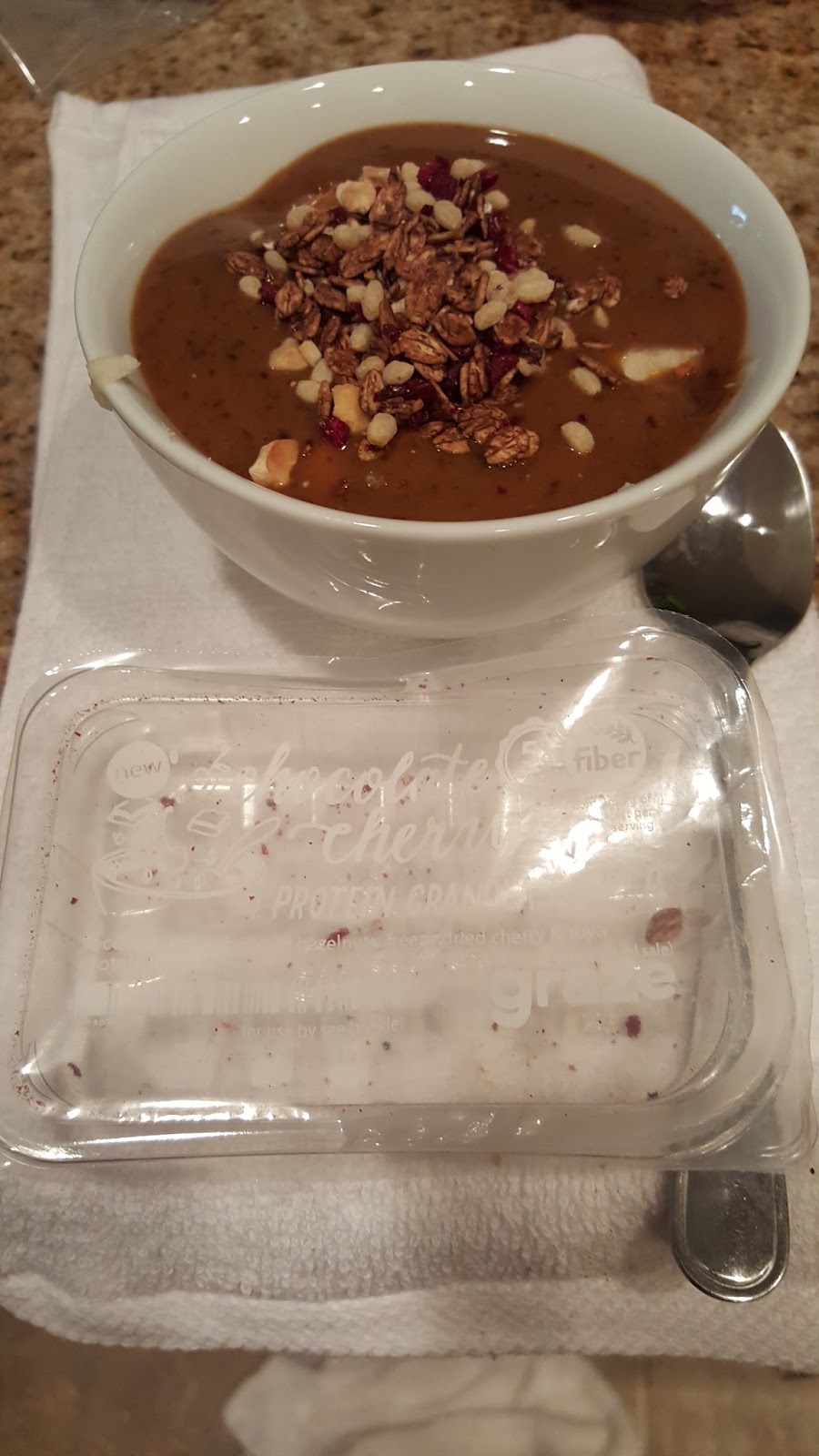 I didn't have the "fresh dates" so used prunes. It tastes sweet and yummy. I will have to try it with the dates for sure! I have been ordering from Graze.com also and added the protein mix on top. Mine defiantly looks different, I will have to try the other recipe. I also think I would do more coconut cream with this.